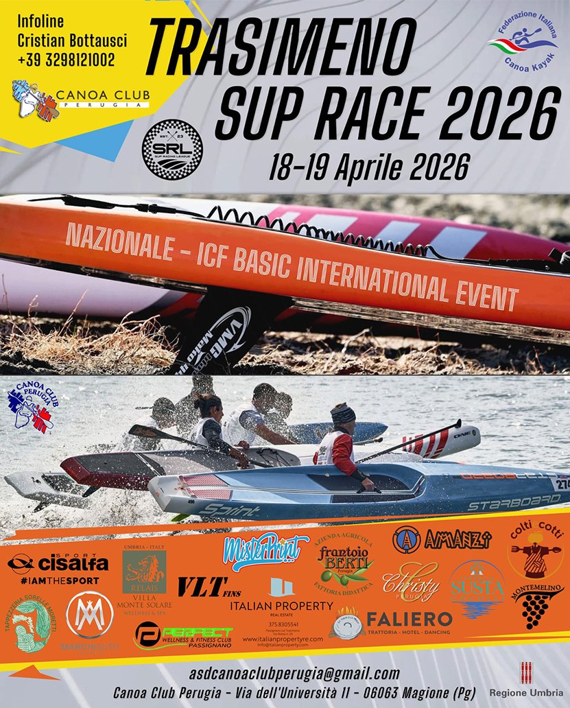 Ci vediamo a Monte del Lago, presso la sede del Canoa Club Perugia. Gareggerete circondati da colline ridenti e un paesaggio intriso di storia antica: la cornice perfetta per una sfida emozionante e coinvolgente.